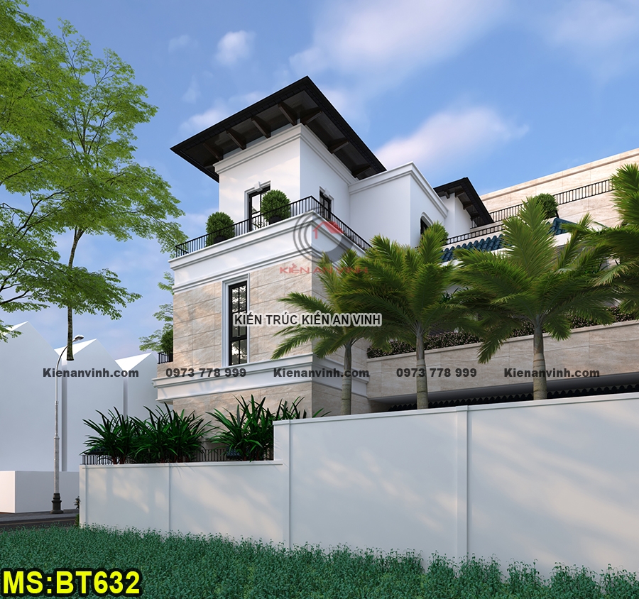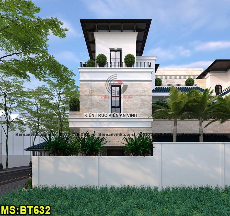 Mẫu biệt thự mái nhật 3 tầng này không chỉ là không gian sống mà còn là nơi thể hiện phong cách, gu thẩm mỹ cùng dấu ấn cá nhân của gia chủ qua từng chi tiết thiết kế. Với sự kết hợp tinh tế, từ hình khối, màu sắc, vật liệu cho đến các chi tiết trang trí như cửa vòm, ban công, lan can, căn biệt thự mang đến một bố cục hài hòa, thu hút mọi ánh nhìn. Hãy cùng tôi khám phá chi tiết biệt thự 3 tầng mái nhật tân cổ điển hiện đại qua các phần sau đây.