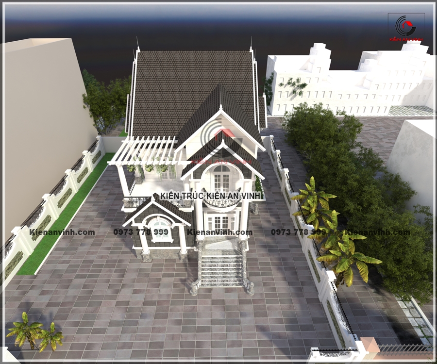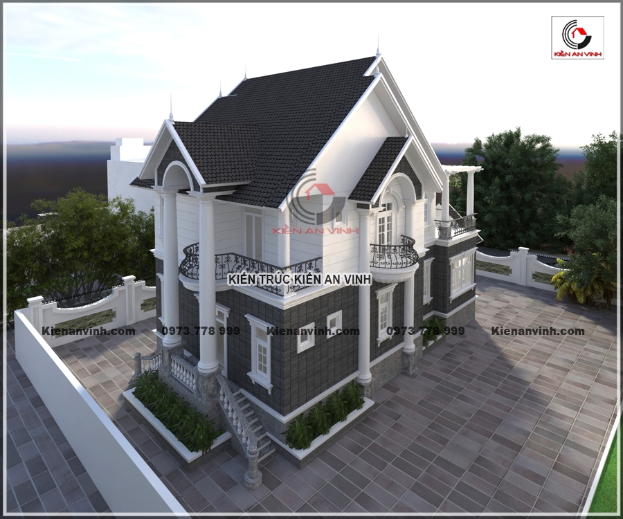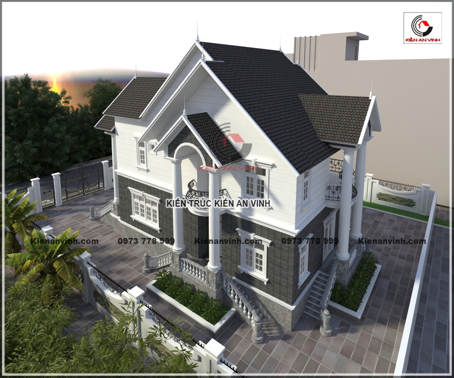 Phong cách thiết kế biệt thự kết hợp hài hòa giữa nét sang trọng tinh tế của tân cổ điển và sự hiện đại, trẻ trung tạo nên một tổng thể kiến trúc vừa cổ kính vừa bắt nhịp xu hướng mới. Đặc biệt, hệ mái Thái dốc chữ A được lắp đặt khoa học vừa giúp bảo vệ công trình khỏi tác động của thời tiết, vừa tăng tính thẩm mỹ và điểm nhấn cho tổng thể. Ánh sáng và không gian mở được cân chỉnh hợp lý, mang lại sự thoáng đãng và gần gũi với thiên nhiên cho không gian sống.
