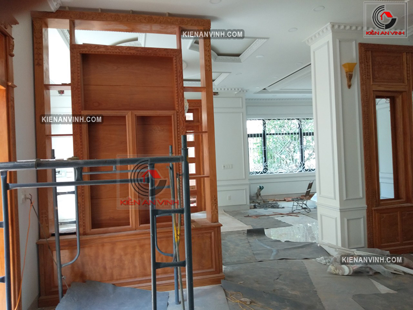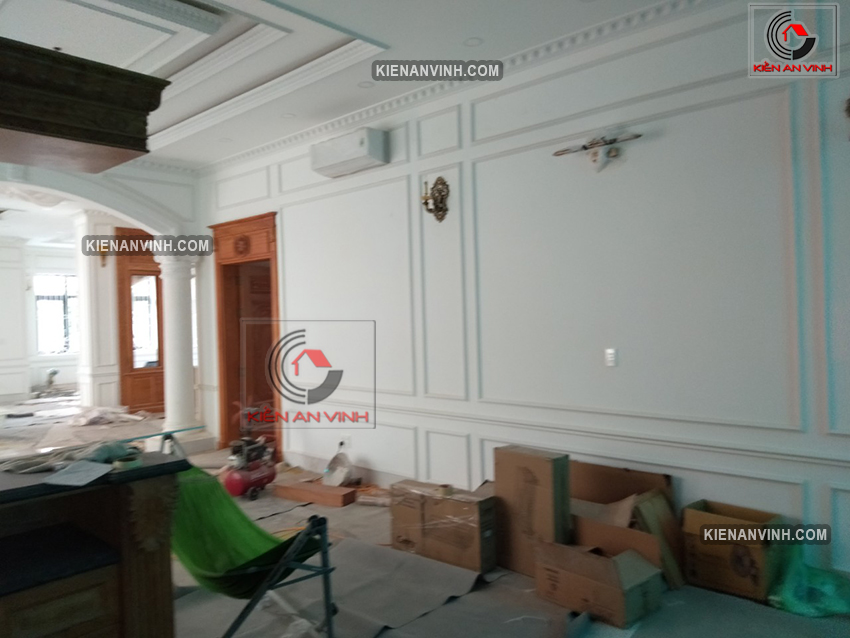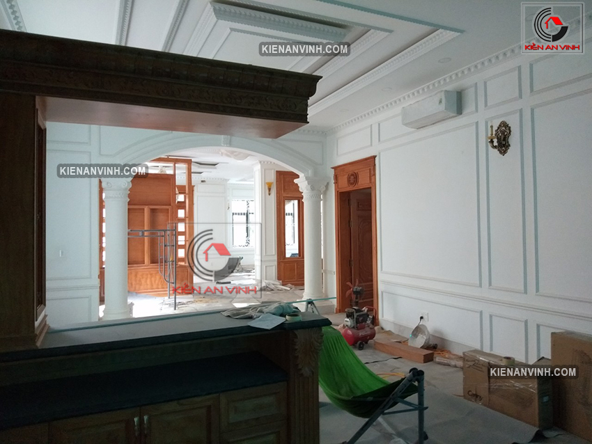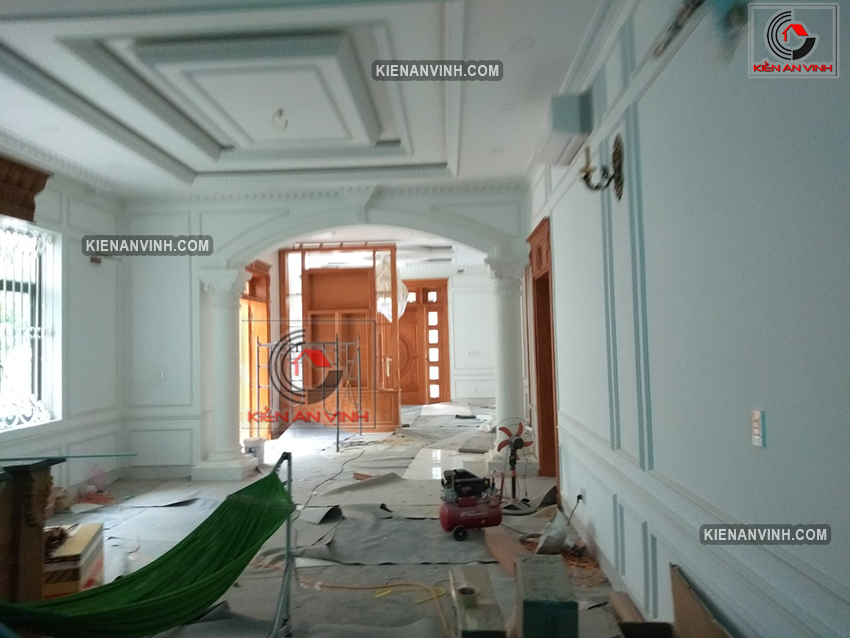 Tiến độ thi công được kiểm soát nghiêm ngặt theo kế hoạch đã đề ra, đảm bảo bàn giao đúng hạn cũng như chất lượng công trình. Việc chuyển sang các công đoạn hoàn thiện sẽ giúp ngôi biệt thự sớm khoác lên mình bộ áo sang trọng tân cổ điển với mái thái hiện đại, đáp ứng mong đợi và tiêu chuẩn sống cao cấp của chủ nhà.