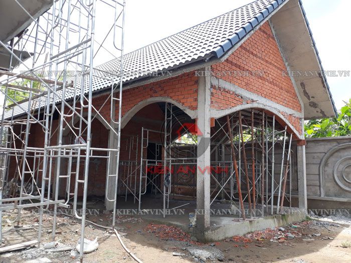 Đến thời điểm hiện tại, thi công phần thô biệt thự 2 tầng tiến độ hiện tại đã đạt đến giai đoạn đổ bê tông hoàn thiện khung chịu lực, xây tường bao che, tạo hình mái Thái và các chi tiết vòm cong, cột trụ. Hình khối tổng thể biệt thự dần hiện rõ với phong cách tân cổ điển thanh thoát, mái Thái dốc nổi bật, cho thấy rõ sự đầu tư chỉnh chu và đẳng cấp trong thi công. Công trình đang sẵn sàng bước vào giai đoạn tô trát và hoàn thiện các chi tiết trang trí tinh xảo.