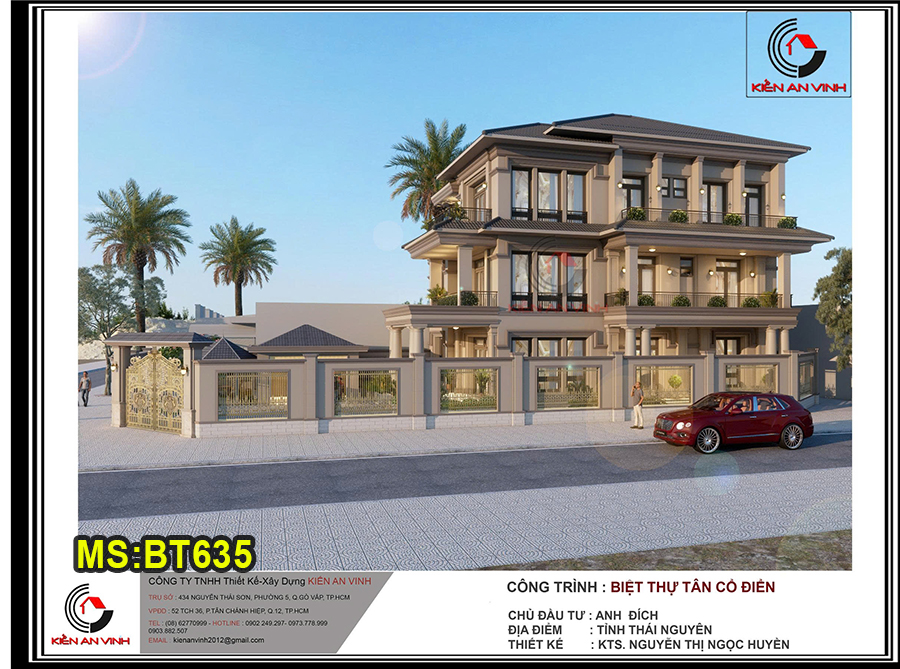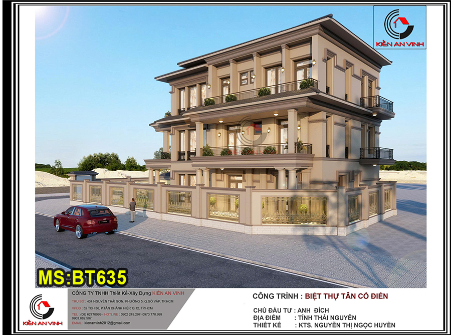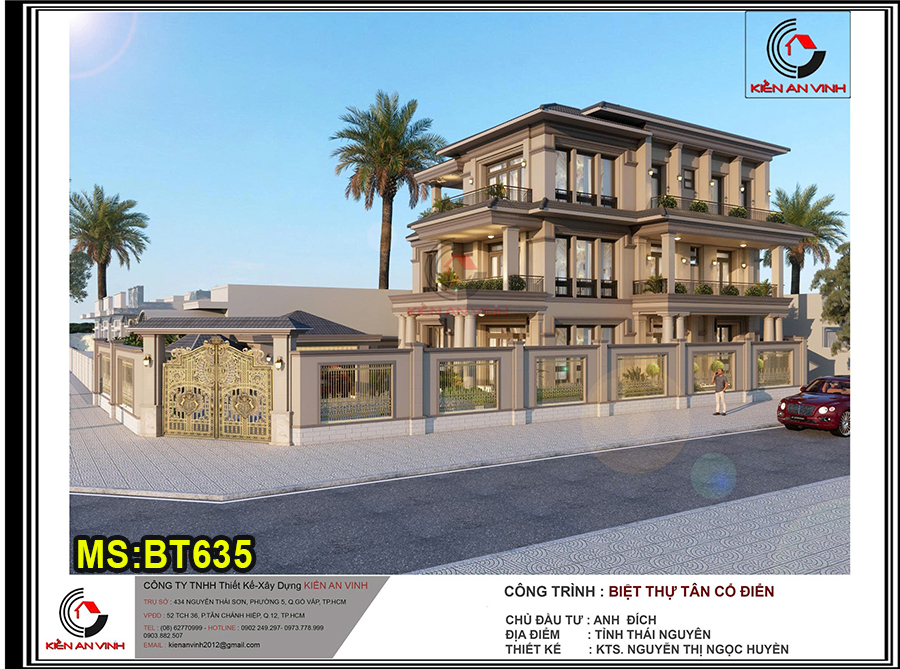 Mẫu biệt thự mái thái 3 tầng 10x20m tân cổ điển và hiện đại có gara ô tô và 5 phòng ngủ ở Bình Quới