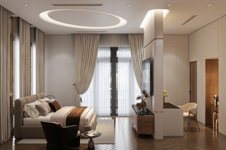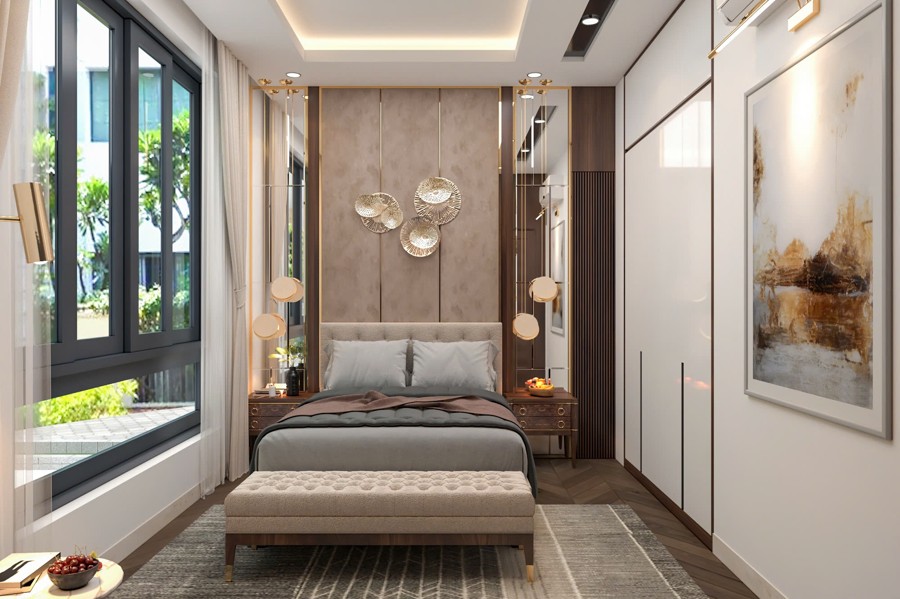 Những chi tiết này tạo ra các tầng lớp, làm tăng độ sâu và sự sinh động cho mặt tiền mẫu thiết kế biệt thự, đồng thời phản ánh trình độ thiết kế cũng như gu thẩm mỹ cao cấp của gia chủ và kiến trúc sư. Đây chính là điểm nhấn đầy tinh thần nghệ thuật góp phần tạo nên sức hút cho Biệt thự mái nhật 3 tầng tân cổ điển hiện đại.