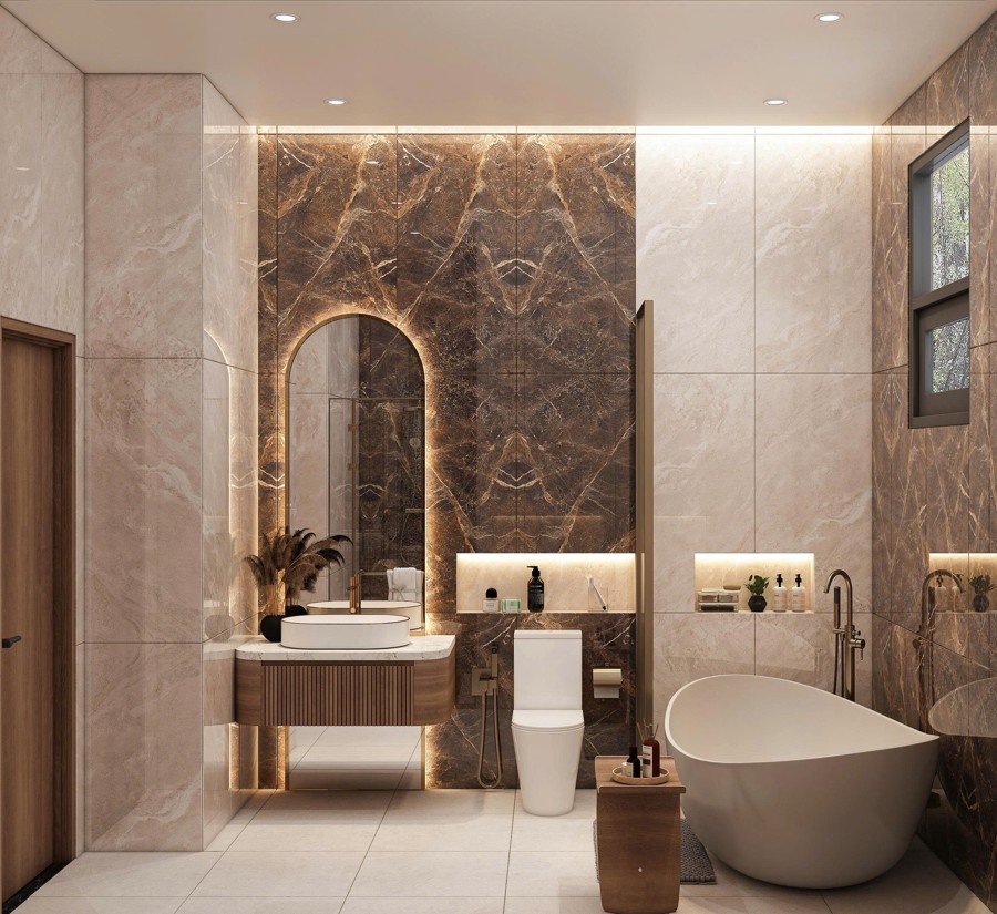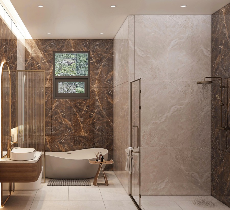 Khu vực sảnh được thiết kế cao ráo với bậc tam cấp lát đá marble sang trọng, ngay từ cái nhìn đầu tiên đã thể hiện vị thế đẳng cấp và sự hiếu khách của gia chủ. Đá marble sáng bóng không chỉ mang lại vẻ đẹp quý phái mà còn thể hiện sự bền vững và đẳng cấp vượt thời gian cho căn biệt thự.