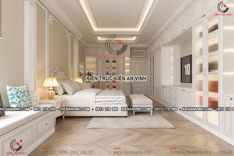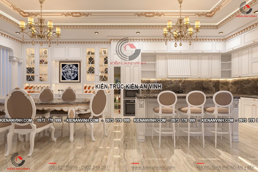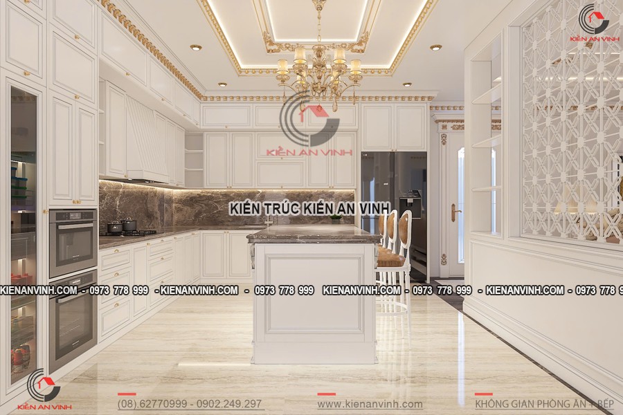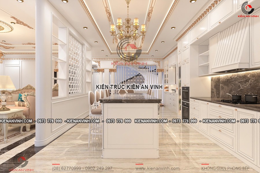 Bên cạnh đó, giải pháp này còn thể hiện phong cách sống hiện đại, chuyên nghiệp nhưng không mất đi tính thẩm mỹ và sang trọng riêng biệt của kiến trúc tân cổ điển. Mẫu biệt thự tân cổ điển 4 tầng kết hợp văn phòng sở hữu sự cân bằng hài hòa giữa yếu tố cổ điển và hiện đại, mang đến một không gian làm việc trang nhã, tiện nghi, đồng thời cũng là tổ ấm yên bình thân thiện với gia đình.