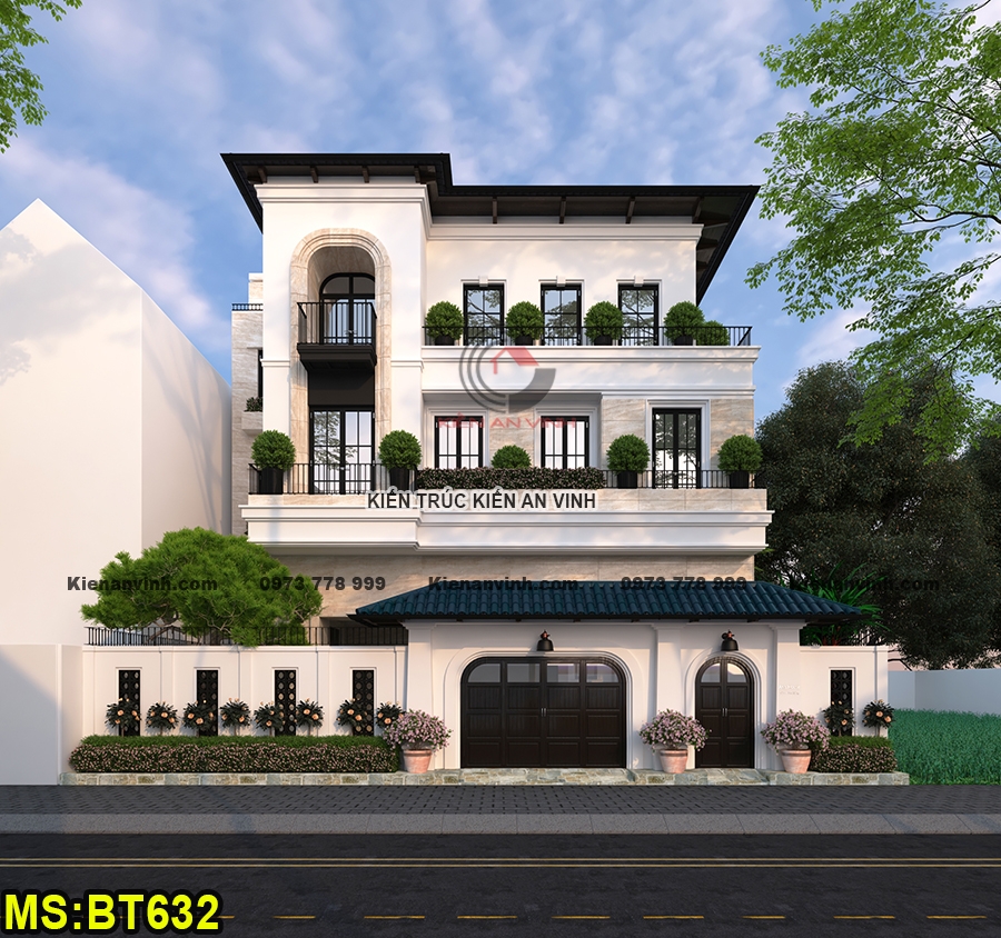 Mẫu biệt thự mái nhật 3 tầng này không chỉ là không gian sống mà còn là nơi thể hiện phong cách, gu thẩm mỹ cùng dấu ấn cá nhân của gia chủ qua từng chi tiết thiết kế. Với sự kết hợp tinh tế, từ hình khối, màu sắc, vật liệu cho đến các chi tiết trang trí như cửa vòm, ban công, lan can, căn biệt thự mang đến một bố cục hài hòa, thu hút mọi ánh nhìn. Hãy cùng tôi khám phá chi tiết biệt thự 3 tầng mái nhật tân cổ điển hiện đại qua các phần sau đây.