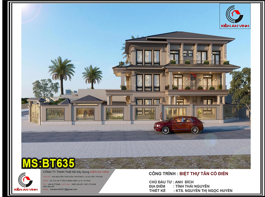 Mẫu biệt thự mái thái 3 tầng 10x20m tân cổ điển và hiện đại có gara ô tô và 5 phòng ngủ ở Bình Quới