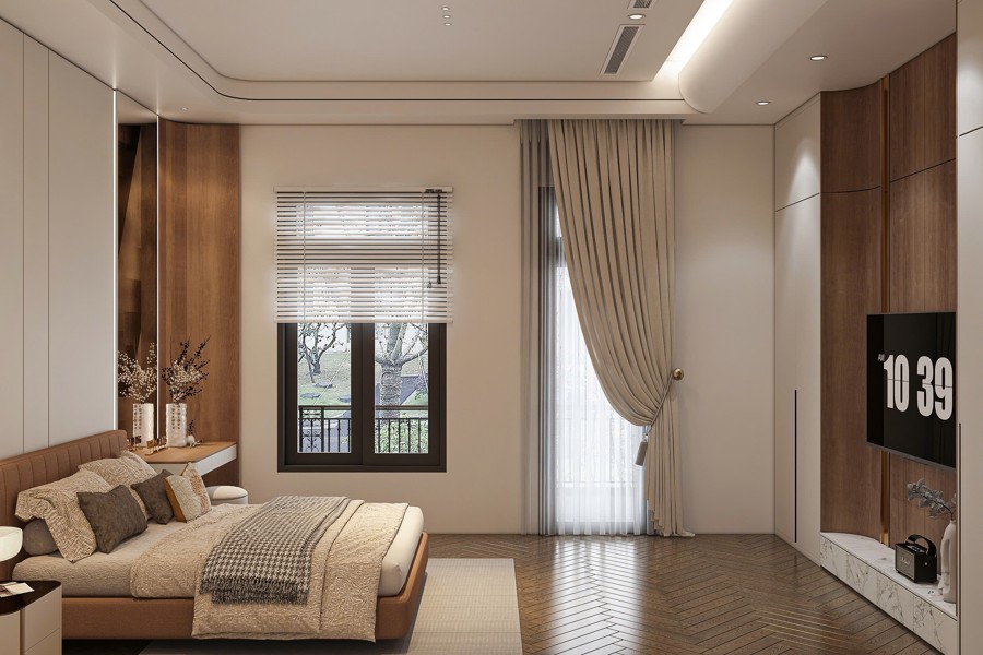 Điểm mạnh của biệt thự mái nhật 3 tầng tân cổ điển hiện đại còn nằm ở khả năng thích nghi với nhiều địa hình và khí hậu khác nhau. Với hệ mái có độ dốc vừa phải và kết cấu đa lớp, ngôi nhà không chỉ tránh được tình trạng ứ đọng nước mà còn giúp không gian nội thất thông thoáng hơn nhờ vào sự thông gió tự nhiên. Đây chính là sự kết hợp tối ưu giữa thẩm mỹ và kỹ thuật xây dựng.