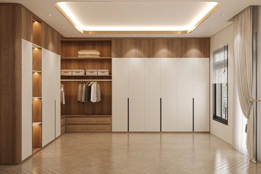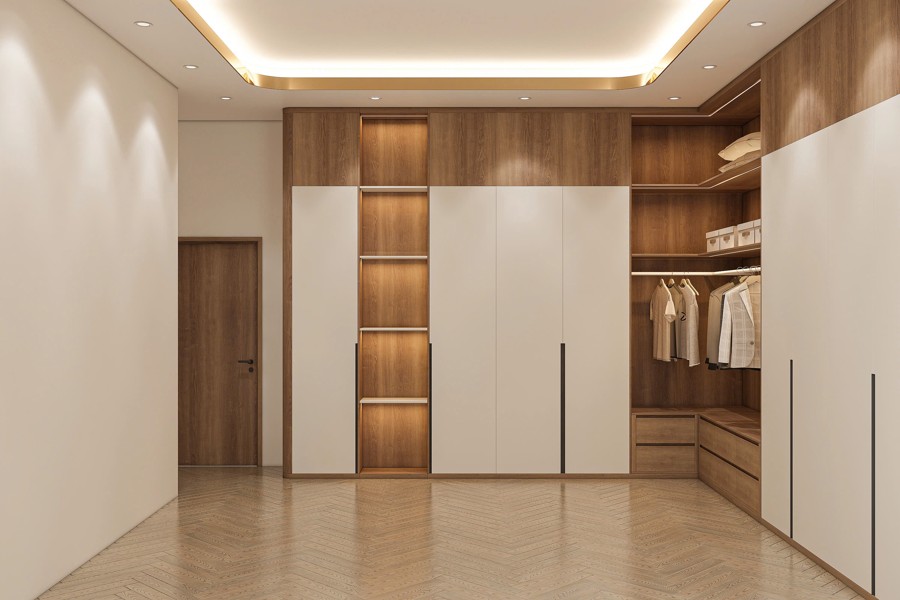 Cửa chính được chế tác bằng gỗ tự nhiên cao cấp, không chỉ tăng tính thẩm mỹ mà còn đảm bảo độ bền và sự chắc chắn cho phần ngoại thất quan trọng nhất ngôi nhà. Sắc gỗ ấm áp tương phản nhẹ nhàng với tông trắng của tường, tạo điểm nhấn đầy cuốn hút và thể hiện chất sang trọng truyền thống.