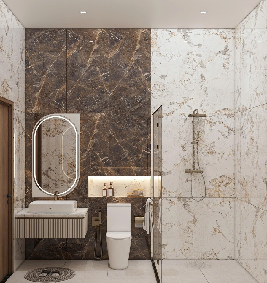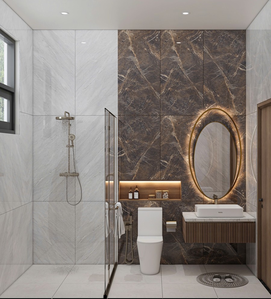 Khu vực sảnh được thiết kế cao ráo với bậc tam cấp lát đá marble sang trọng, ngay từ cái nhìn đầu tiên đã thể hiện vị thế đẳng cấp và sự hiếu khách của gia chủ. Đá marble sáng bóng không chỉ mang lại vẻ đẹp quý phái mà còn thể hiện sự bền vững và đẳng cấp vượt thời gian cho căn biệt thự.
