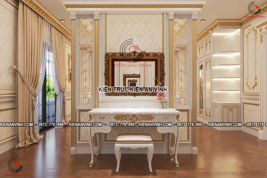 Bên cạnh đó, giải pháp này còn thể hiện phong cách sống hiện đại, chuyên nghiệp nhưng không mất đi tính thẩm mỹ và sang trọng riêng biệt của kiến trúc tân cổ điển. Mẫu biệt thự tân cổ điển 4 tầng kết hợp văn phòng sở hữu sự cân bằng hài hòa giữa yếu tố cổ điển và hiện đại, mang đến một không gian làm việc trang nhã, tiện nghi, đồng thời cũng là tổ ấm yên bình thân thiện với gia đình.